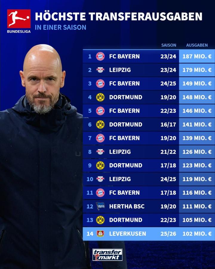 众所周知,拜仁慕尼黑一直是德甲转会市场的大佬,之前曾多次以数亿欧元的引援支出震撼人心。不过,随着莱比锡等球队的崛起,德甲的转会市场变得更加激烈竞争,勒沃库森的引援支出也在逐渐增加。